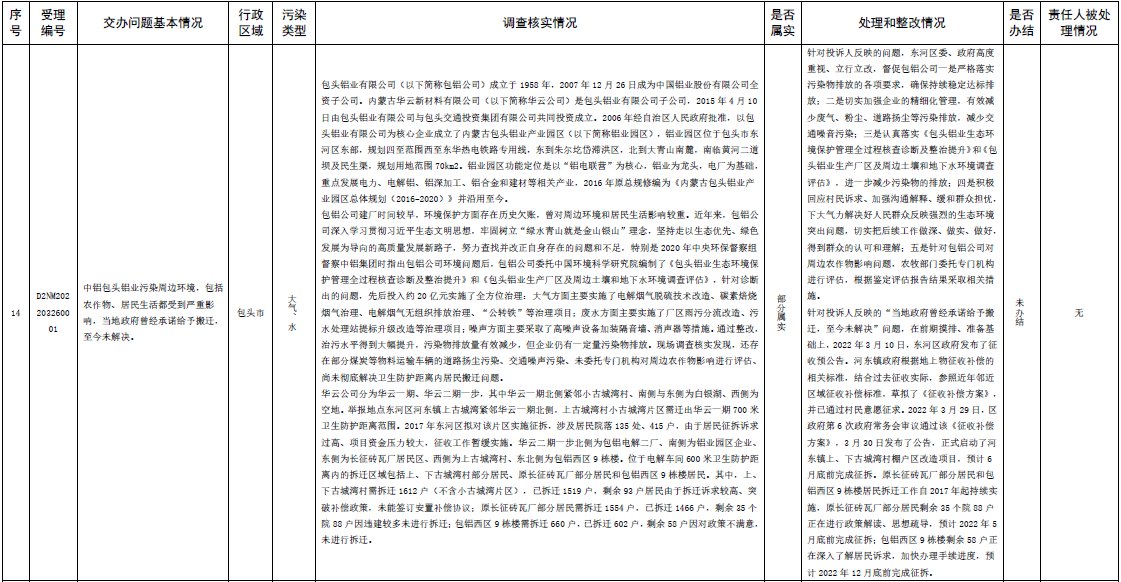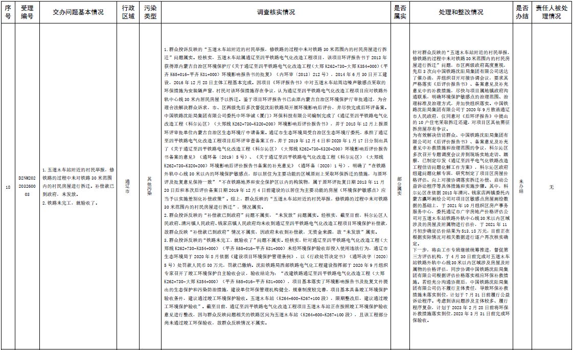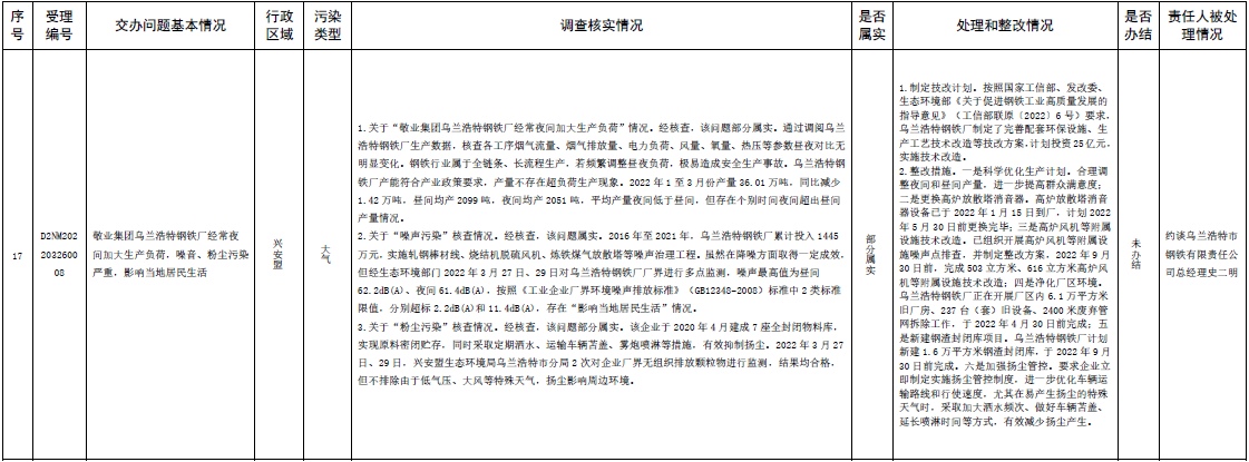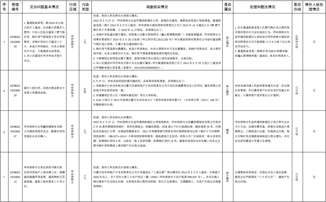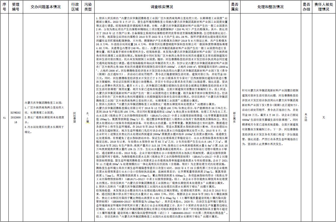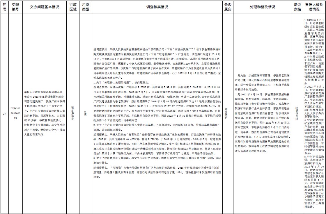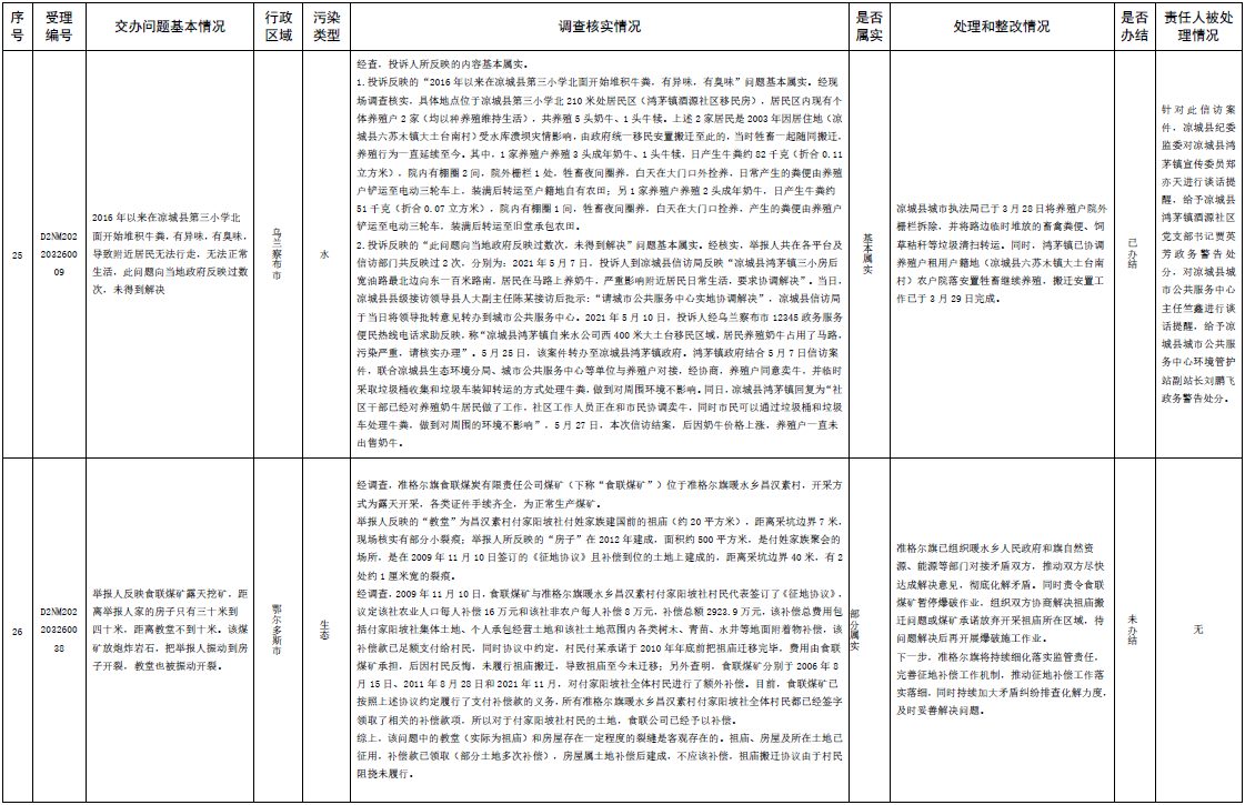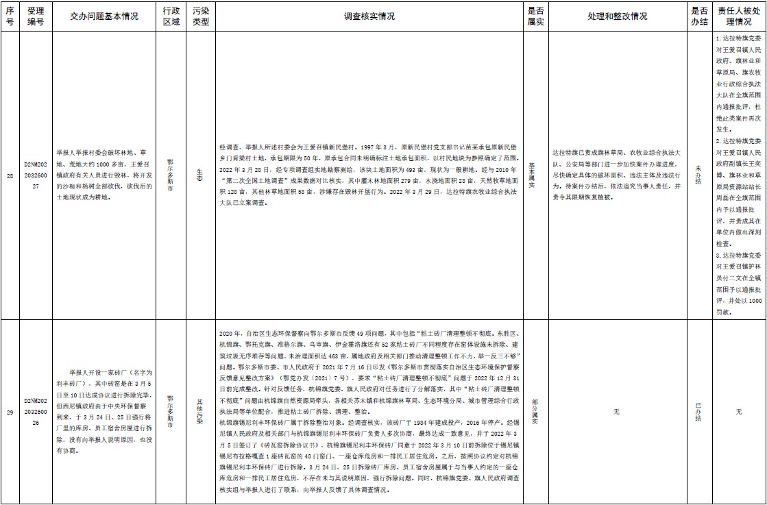 中央第三生態(tài)環(huán)境保護督察組交辦內(nèi)蒙古第二批42件群眾信訪舉報件辦理情況