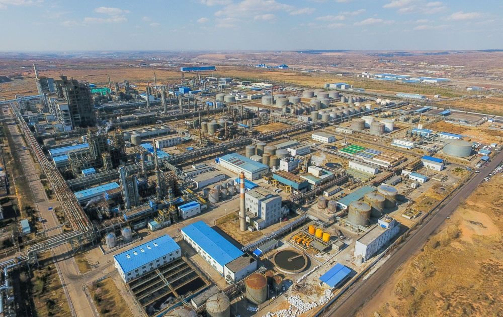 這是國(guó)家能源集團(tuán)鄂爾多斯煤制油分公司廠區(qū)(2019年4月11日攝,無(wú)人機(jī)照片)。新華社記者劉磊攝