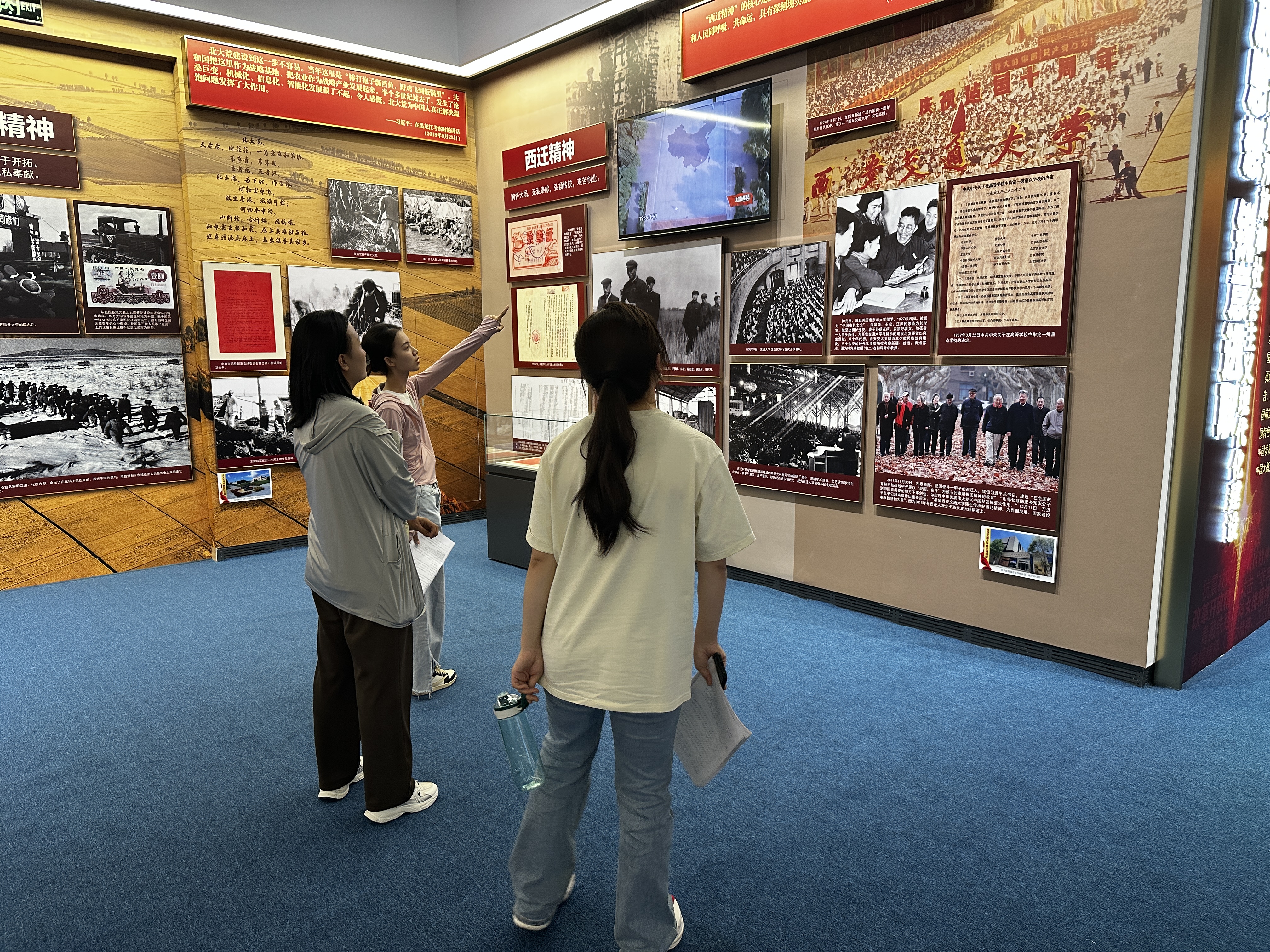 記者看到,在牛玉儒精神、“三北”精神等展覽前,圍繞著不少觀眾,他們駐足凝視,拿出手機(jī)拍攝,互相交流著。“我對(duì)這個(gè)展覽很感興趣,可以全面學(xué)習(xí)到黨的歷史?!闭f(shuō)完,金橋小學(xué)學(xué)生趙峻溥在抗美援朝精神展覽前認(rèn)真地閱讀起來(lái)。