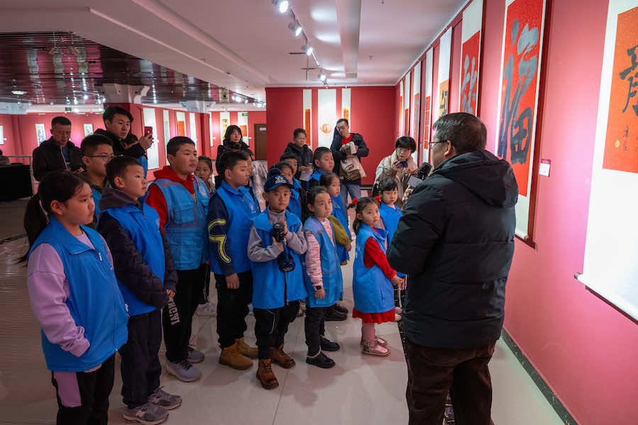 活動現場,20余名小朋友在家長的陪同下,參觀了“藝美北疆 遇見青城”——呼和浩特市百福迎春賀歲作品展”和“藝美北疆 新春納?!薄厣夏?nbsp;水墨集中國書畫名家邀請展,小朋友在呼和浩特美術館老師的講解下,了解了春節(jié)貼“福”字是我國民間由來已久的風俗,“?!蔽幕侵腥A優(yōu)秀傳統(tǒng)文化的組成部分,激發(fā)了小朋友們對傳統(tǒng)文化的熱愛。