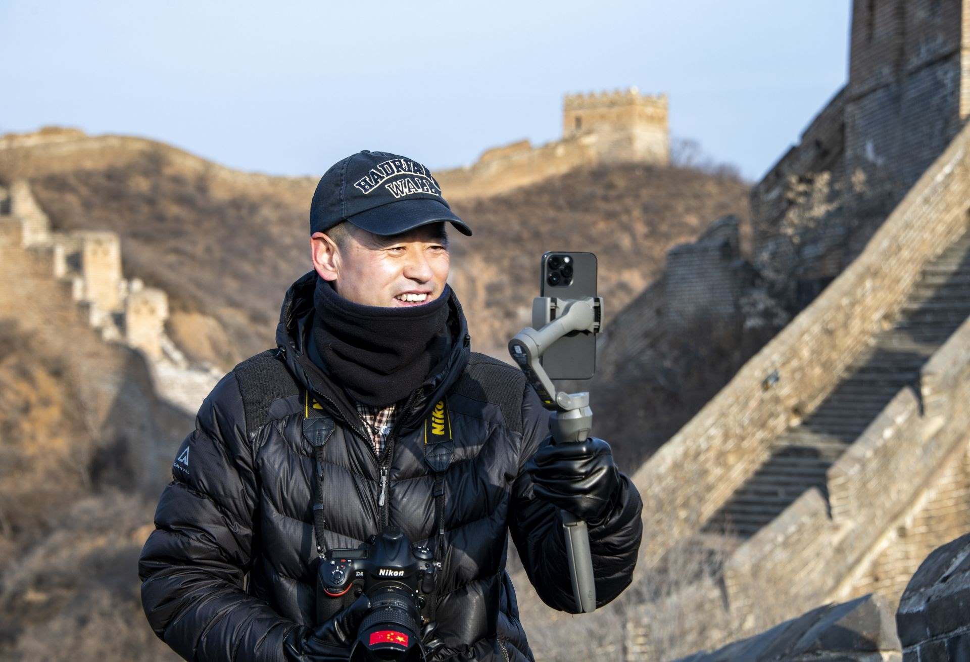 3月2日,“長城老郭”登上長城進行直播。紀(jì)正權(quán)攝