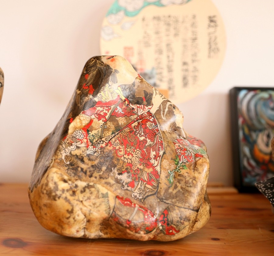 魯婷創(chuàng)作的石畫(huà)作品