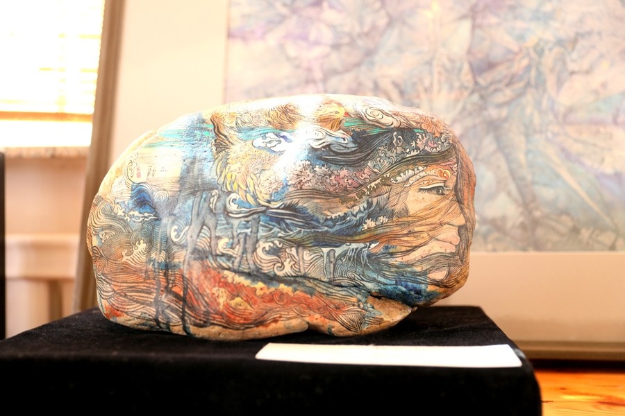 魯婷創(chuàng)作的石畫(huà)作品《淼》