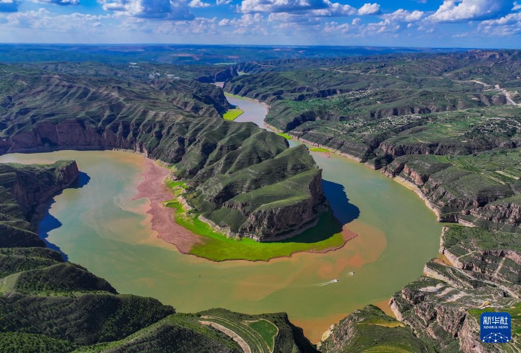 ??這是8月12日拍攝的黃河老牛灣風(fēng)光(無人機(jī)照片)。
