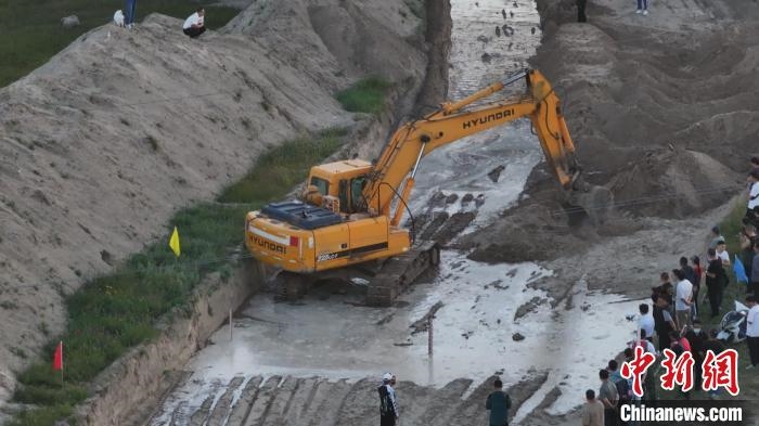 圖為工程機(jī)械清理西遼河河道。格日勒圖 攝