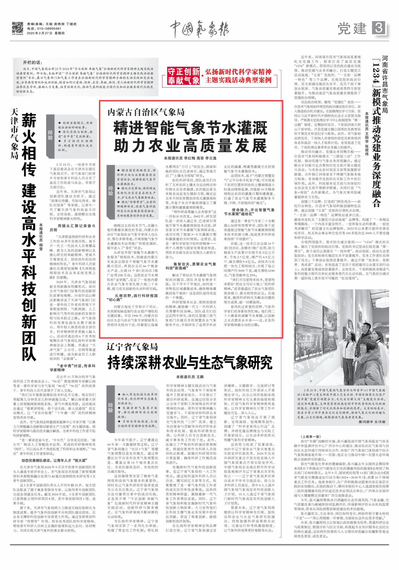 2025年2月27日,《中國氣象報》第3版刊發(fā)題為《內(nèi)蒙古自治區(qū)氣象局精進智能氣象節(jié)水灌溉助力農(nóng)業(yè)高質(zhì)量發(fā)展》的文章,報道了從研發(fā)升級“智能節(jié)水灌溉氣象服務(wù)”預(yù)報技術(shù),到建成內(nèi)蒙古突泉縣全國首個智能氣象節(jié)水灌溉示范區(qū),再到在全區(qū)66個糧食主產(chǎn)縣、全國14個?。ㄗ灾螀^(qū))推廣應(yīng)用228萬畝,內(nèi)蒙古自治區(qū)氣象局精進智能氣象節(jié)水灌溉助力農(nóng)業(yè)高質(zhì)量發(fā)展。