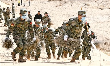 2025年5月6日《中國國防報(bào)》第1版刊發(fā)了《內(nèi)蒙古巴彥淖爾軍分區(qū)發(fā)動(dòng)民兵參與烏蘭布和沙漠治沙攻堅(jiān)戰(zhàn) 植樹造林戰(zhàn)“黃龍”》的文章,報(bào)道了連日來,內(nèi)蒙古巴彥淖爾市民兵到烏蘭布和沙漠植樹造林。為植樹造林鎖住“黃龍”,當(dāng)?shù)剀娒衤?lián)手筑起了一道48公里長的綠色屏障。據(jù)氣象部門數(shù)據(jù)顯示,近年來,當(dāng)?shù)厣硥m暴、干熱風(fēng)、浮塵天氣年平均日數(shù)顯著下降。