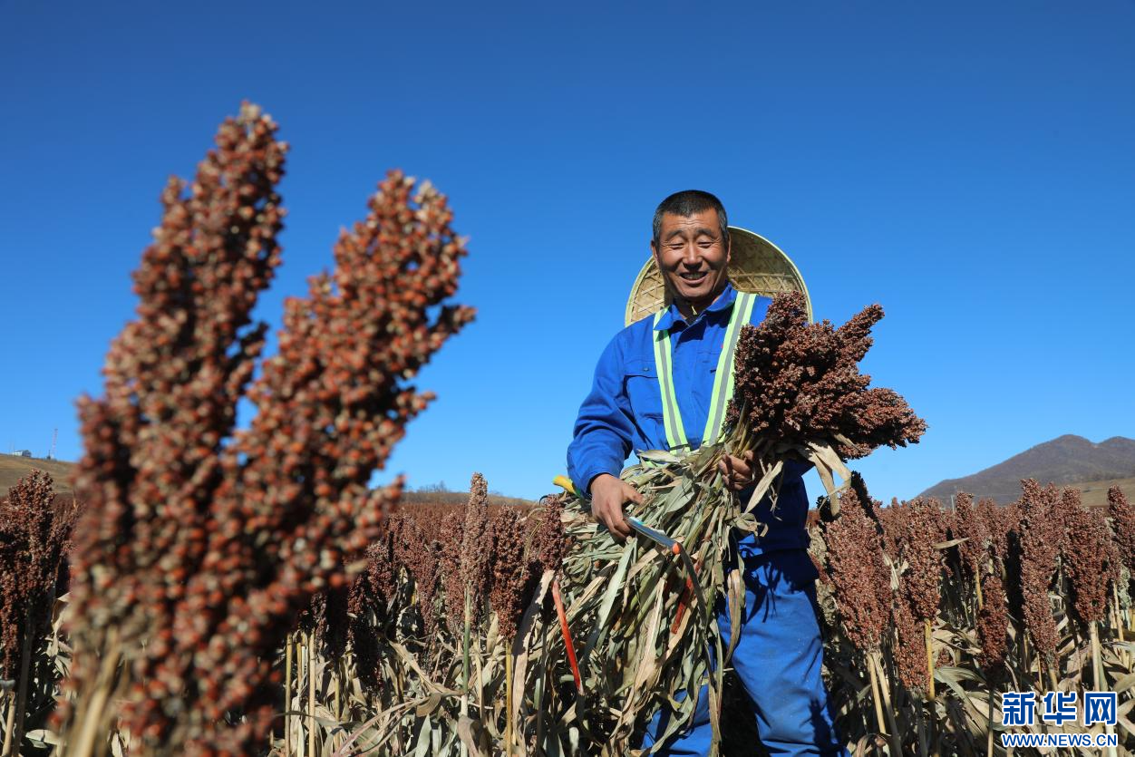 ??10月22日,在內(nèi)蒙古自治區(qū)呼倫貝爾農(nóng)墾綽爾河農(nóng)牧場有限公司田間,農(nóng)場員工正在收獲高粱。新華網(wǎng)發(fā)(哈園碩 攝)