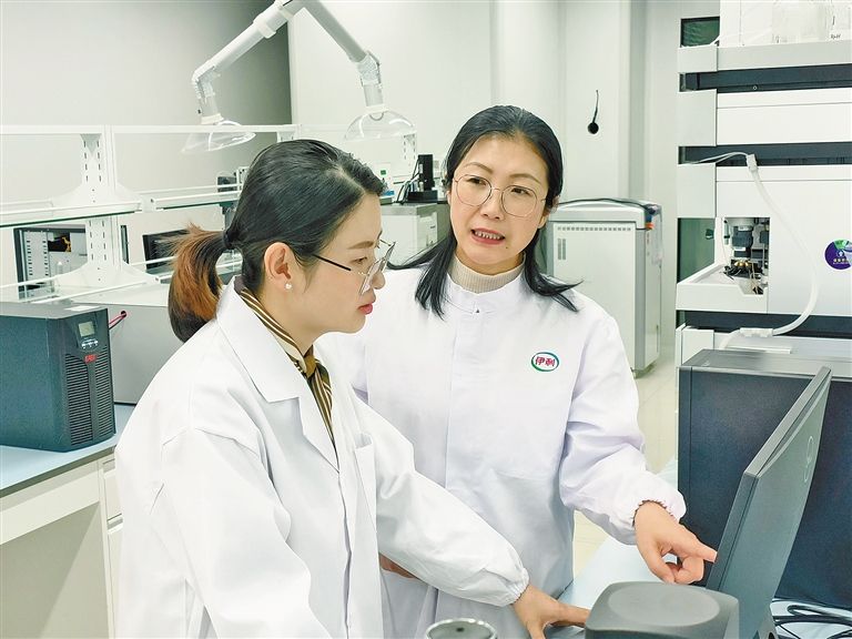 國家乳業(yè)技術創(chuàng)新中心實驗室科研人員溝通科研工作。