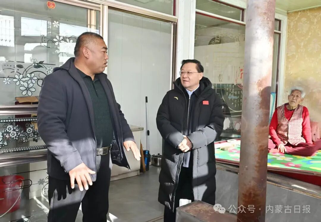11月30日,自治區(qū)黨委書(shū)記王偉中到小獨(dú)立壩村受災(zāi)群眾家中了解情況。草原云·內(nèi)蒙古新聞網(wǎng)記者 馬建兵 攝