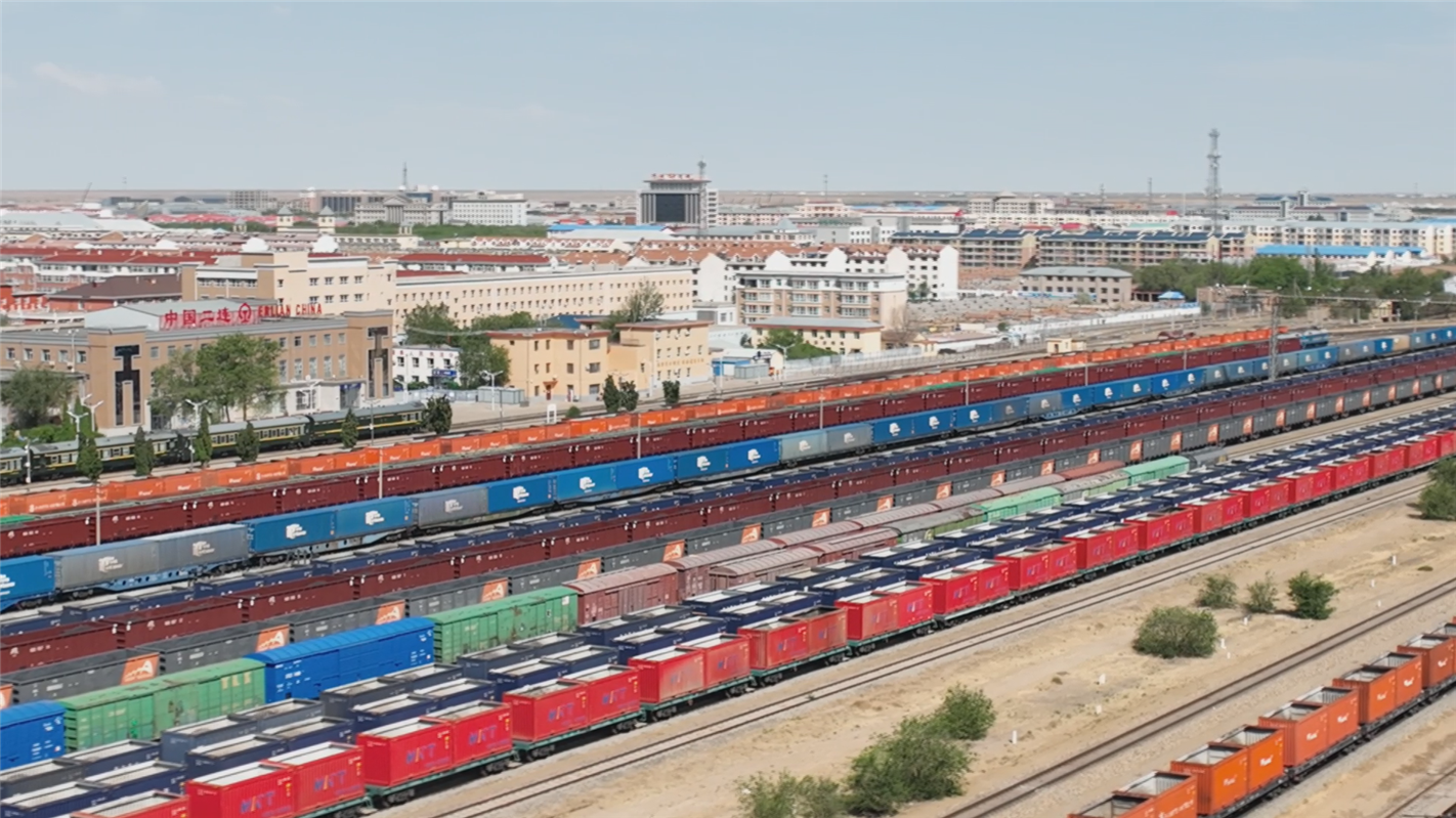 二連浩特鐵路口岸地處中蒙俄經(jīng)濟(jì)走廊核心,是中歐班列中通道唯一進(jìn)出境鐵路口岸。在共建“一帶一路”倡議推動下,自2013年通行首列中歐班列以來,二連浩特鐵路口岸中歐班列開行數(shù)量、頻次呈現(xiàn)持續(xù)增長態(tài)勢,累計(jì)通行中歐班列超2.1萬列。運(yùn)輸貨物品類從最初的金屬、化工、服裝鞋帽為主逐漸轉(zhuǎn)變?yōu)楝F(xiàn)在以新能源汽車、電子產(chǎn)品、家用電器等高附加值產(chǎn)品為主。