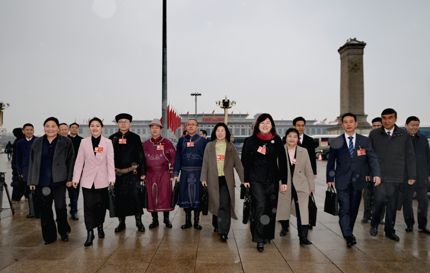 3月5日上午,十四屆全國(guó)人大四次會(huì)議在京開(kāi)幕,內(nèi)蒙古代表團(tuán)代表精神抖擻、滿(mǎn)懷信心地走向會(huì)場(chǎng)。草原云記者 馬建兵 攝