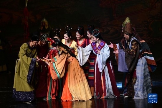 5月24日晚,國家藝術(shù)基金2022年度舞臺藝術(shù)創(chuàng)作立項資助項目——大型藏戲《金城公主》在青海省西寧市首演。劇目以唐朝第二位入藏公主金城公主遠嫁吐蕃事件為歷史背景,講述了金城公主入藏前后顧全大局,用智慧、忍耐克服困難,化解矛盾,堅固唐蕃友誼,促進民族團結(jié),贏得愛戴和敬仰的故事。