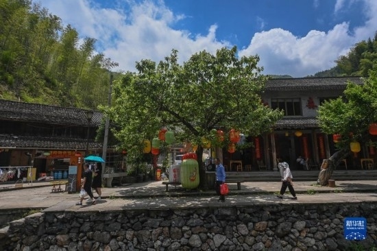 5月30日,游客在布袋坑村里游覽。