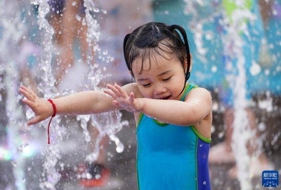 當日7時,北京市氣象臺升級發(fā)布高溫紅色預(yù)警信號,預(yù)計6月23日至25日北京市高溫天氣仍將持續(xù)。不少市民來到泳池、水上樂園和戶外噴泉,戲水覓清涼。