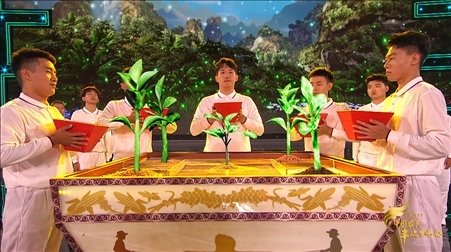 民以食為天,食以糧為先。2023年豐晚現(xiàn)場(chǎng),沿著五條金穗鋪展的“豐收大道”,五位育種專(zhuān)家將手捧五斗種子,把自主創(chuàng)新培育的棉花、小麥、玉米、花生、水稻種子,鄭重交給自己的學(xué)生,并和一批農(nóng)科大學(xué)新生代表共同完成一場(chǎng)別有深意的“中國(guó)種子傳承儀式”。種子最終被播入“五色土”,不僅種下代代傳承、年年豐收的美好心愿,更承載著一代又一代科研工作者不斷求索與接力、守護(hù)糧食安全的責(zé)任和使命。