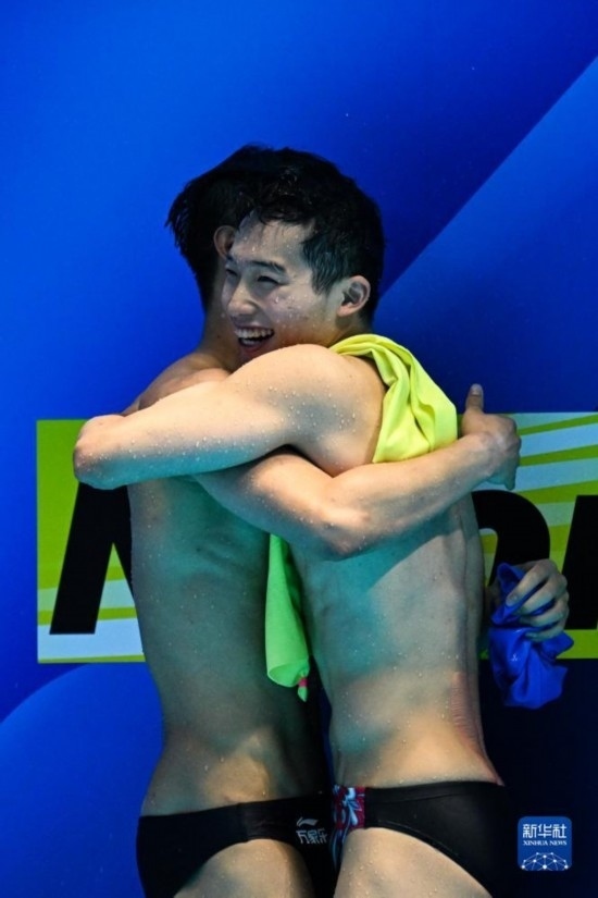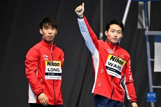 當(dāng)日,在2023年福岡世界游泳錦標(biāo)賽跳水男子雙人3米板決賽中,中國(guó)組合龍道一/王宗源以456.33分的總成績(jī)奪得冠軍。