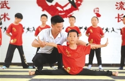 暑假期間,貴州省貴陽(yáng)市開(kāi)陽(yáng)縣青少年學(xué)生校外活動(dòng)中心免費(fèi)開(kāi)辦少兒武術(shù)班,吸引當(dāng)?shù)貝?ài)好武術(shù)的孩子參加學(xué)習(xí)。圖為7月18日,在少兒武術(shù)班,孩子們?cè)诶蠋煹闹笇?dǎo)下練習(xí)武術(shù)動(dòng)作。袁福洪攝(人民圖片)