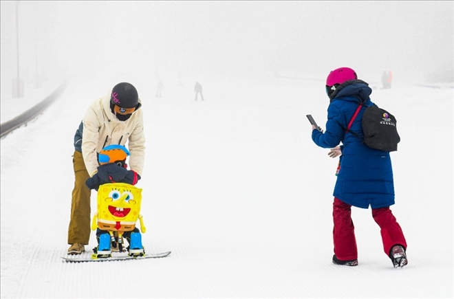 在新疆白云國(guó)際滑雪場(chǎng),許秀娟(右)在給愛(ài)人和兒子拍照。哈爾濱人許秀娟曾是專(zhuān)業(yè)運(yùn)動(dòng)員,代表國(guó)家隊(duì)拿過(guò)國(guó)際大賽獎(jiǎng)牌。退役后她來(lái)到新疆,在這里她和愛(ài)人相識(shí),一起開(kāi)辦培訓(xùn)機(jī)構(gòu),面向青少年推廣冰雪運(yùn)動(dòng)。