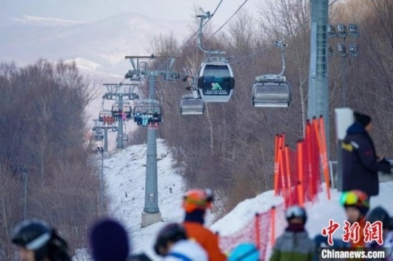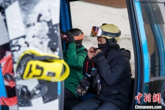 滑雪運(yùn)動(dòng)員乘坐纜車(chē)上山滑雪 趙宇航 攝