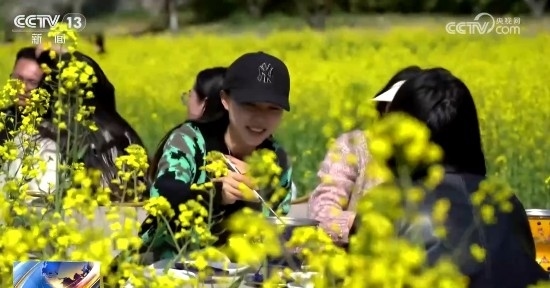 在宜昌市夷陵區(qū),這片油菜花田依山傍水,村居散落其中,構(gòu)成一幅優(yōu)美的田園畫卷。中午時分,一場小型音樂會在油菜花田中拉開帷幕,旋律與花海邂逅,如同大珠小珠落玉盤,叮叮當當,又如泉水叮咚般悅耳。游客置身其間,吃著火鍋、品著咖啡,一切煩擾都被洗滌殆盡。