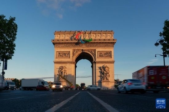 當日,殘奧會標志亮相法國巴黎凱旋門。第17屆夏季殘疾人奧林匹克運動會將于2024年8月28日至9月8日在法國巴黎舉行。