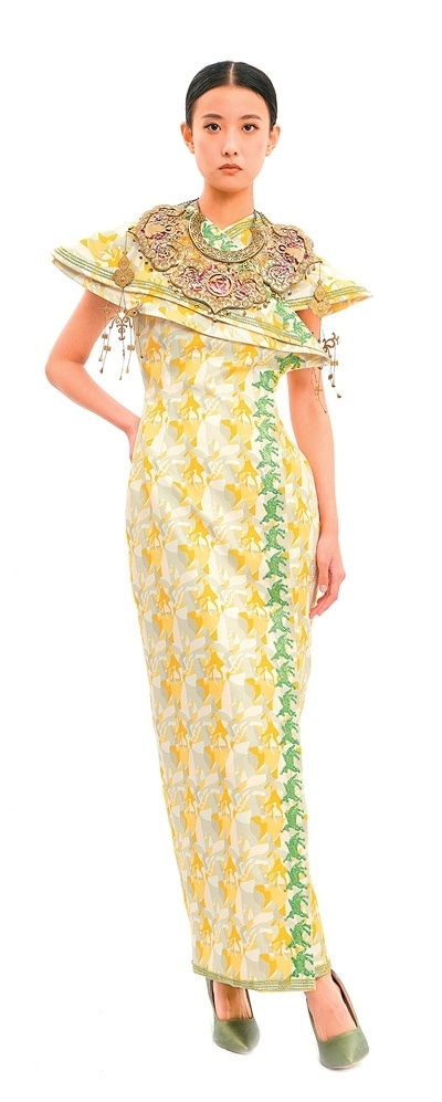 崔榮榮團隊為“中法時尚之約:絲路遺產創(chuàng)新設計時裝發(fā)布會”設計的“絲綢之路”禮服。