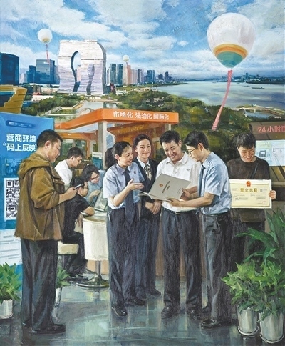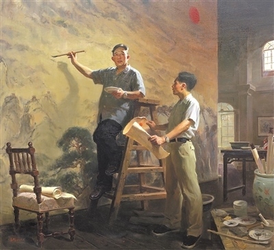 油畫(huà)《浙江省三個(gè)“一號(hào)工程”——改革攻堅(jiān)》,浙江省油畫(huà)院集體創(chuàng)作。