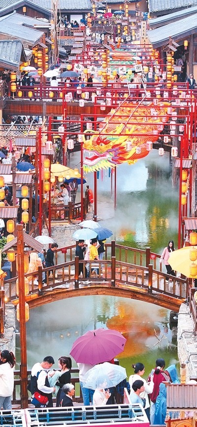 龍門浩老街上,幾名外地游客沿著青石臺階漫步至老街最高點——攬月臺,遠眺渝中半島。這條位于重慶市南岸區(qū)南濱路中段的老街,面朝長江,背依南山,開埠文化、巴渝文化等文化底蘊深厚。近年來,經過保護與修繕,這里不僅恢復了歷史風貌,還增添了現(xiàn)代時尚氣息。古色古香的街道兩旁,新潮的商鋪、餐館和咖啡館為市民游客休閑購物提供便利和全新體驗。“感受時光交錯的美妙”,成為這里的一大魅力。數(shù)據顯示,自發(fā)展全域旅游以來,龍門浩老街所在的龍門浩街道已接待游客近4000萬人次,實現(xiàn)旅游收入276.8億元,龍門浩老街還成功創(chuàng)建第二批國家級夜間文旅消費聚集區(qū)。
