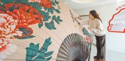 工作人員繪制王氏折扇。李曉紅攝(影像中國)