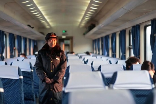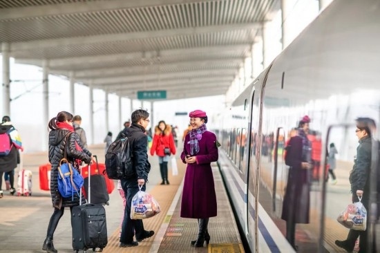 除夕當天,復(fù)興號上的乘務(wù)員送出祝福。