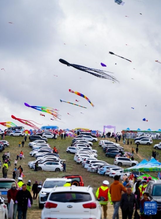 4月19日,人們?cè)谛陆疄豸斈君R市水磨溝區(qū)風(fēng)箏嘉年華活動(dòng)現(xiàn)場(chǎng)放風(fēng)箏。