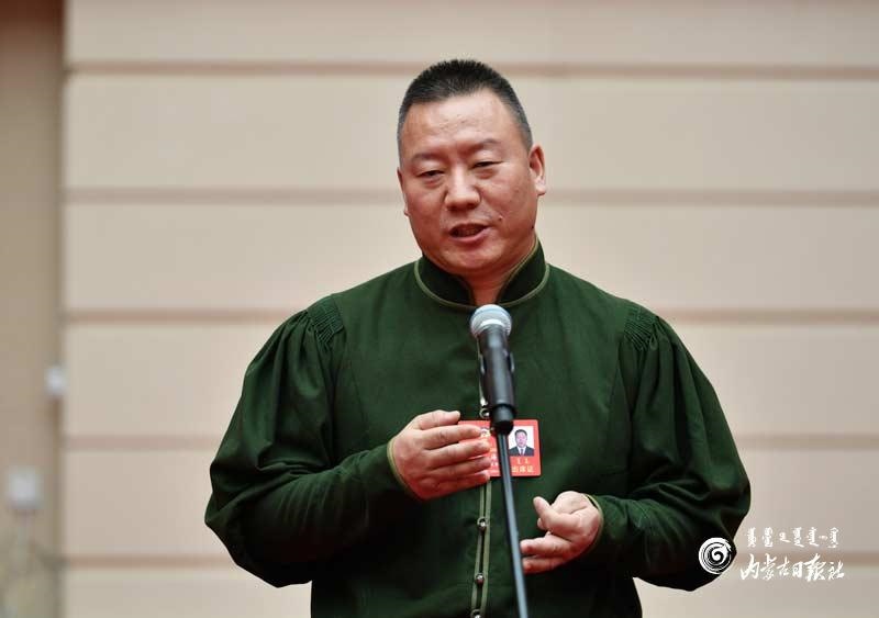 自治區(qū)政協(xié)委員于學(xué)軍回答記者提問。內(nèi)蒙古日報記者 馬建荃攝