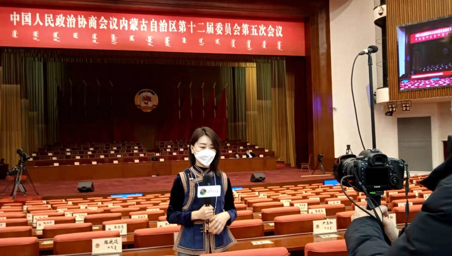 中國人民政治協(xié)商會議內(nèi)蒙古自治區(qū)第十二屆委員會第五次會議將于1月20日至23日在呼和浩特召開。圖為會議開始前,記者在會場提前試鏡。