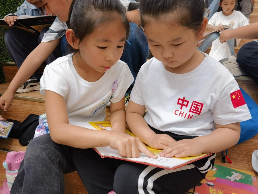學生們挑選自己喜愛的書籍。攝影:楊亞娟