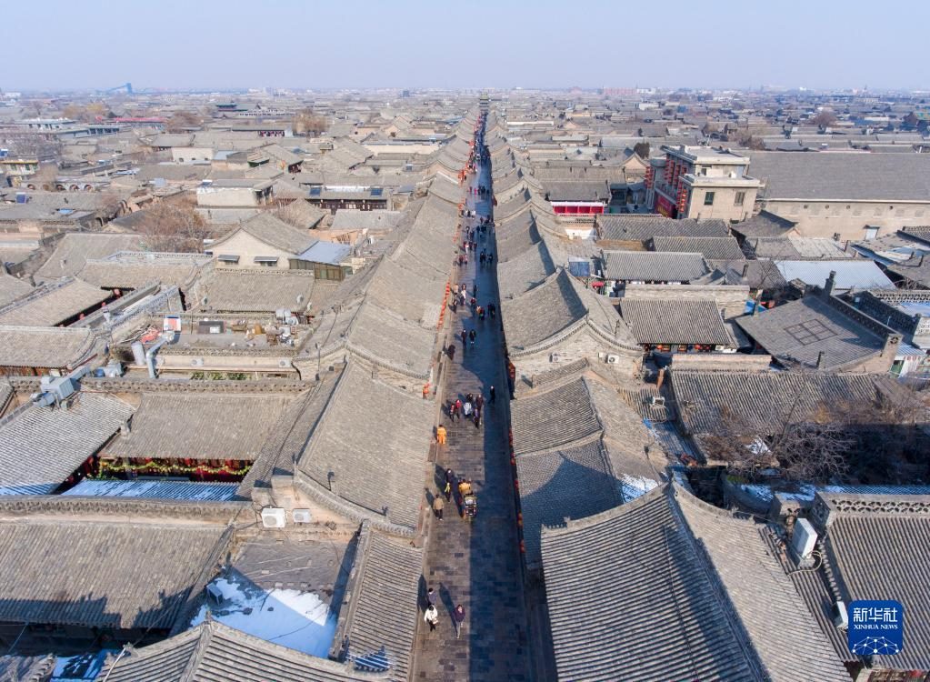 這是2月8日拍攝的平遙古城一角(無(wú)人機(jī)照片)。新華社記者 楊晨光 攝