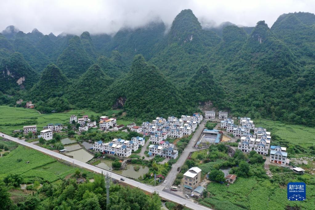 這是廣西環(huán)江毛南族自治縣大安鄉(xiāng)可愛(ài)村(5月12日攝,無(wú)人機(jī)照片)。新華社記者 陸波岸 攝