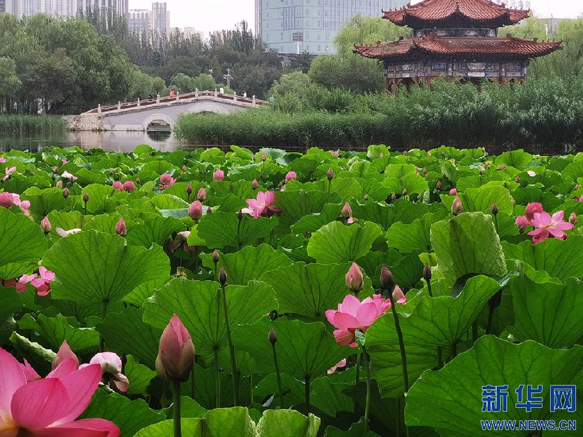 每年7月中旬,內(nèi)蒙古自治區(qū)呼和浩特市公園內(nèi)的荷花進(jìn)入盛開期,市民們紛紛走入公園,欣賞塞外青城“接天蓮葉無窮碧,映日荷花別樣紅”的美麗景色。
